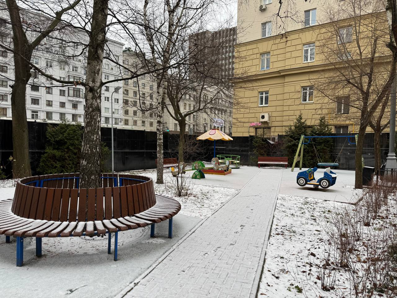 Зелёный, ухоженный двор для прогулок и отдыха.